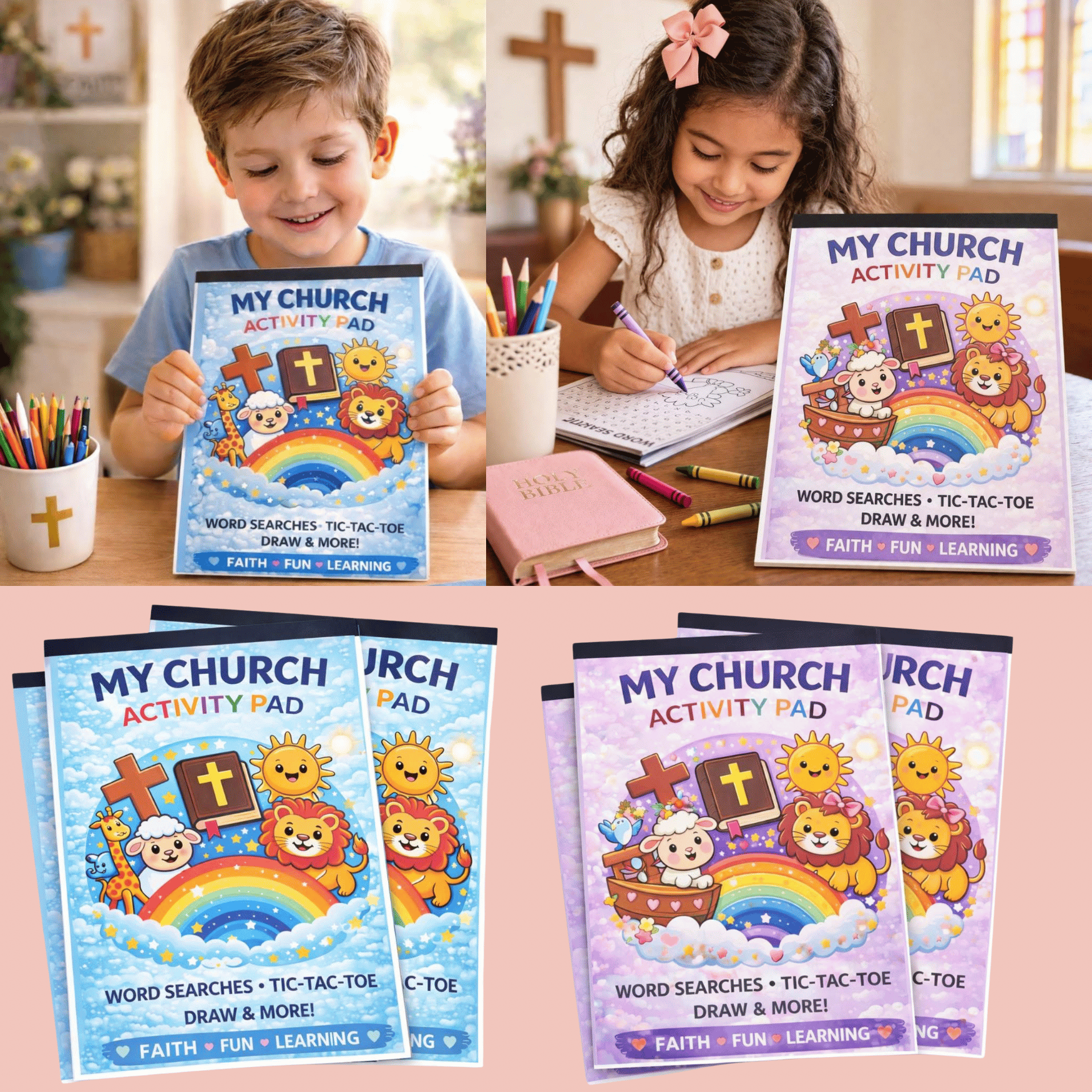 - Fun + faith combined in one simple activity pad